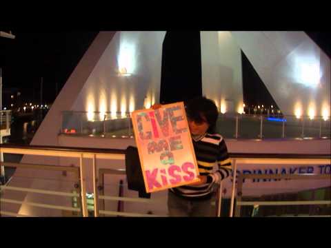 豪哥英国唔简单任务《俾我一个Kiss!》!白天吹着冷风、夜晚刮着寒风,豪哥抱着《Give Me a Kiss》的牌子在街上进行任务。